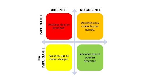 - En el primer cuadrante, margen superior izquierdo, ubicamos todas las tareas importantes y urgentes. Es decir, aquellas que necesitan resolución a corto plazo.
